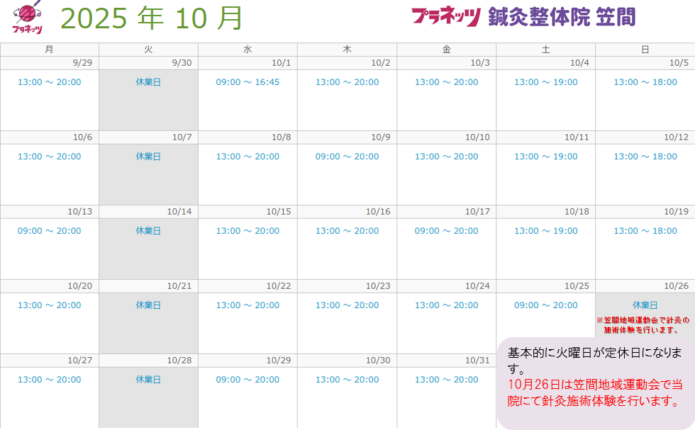 店舗名 | プラネッツ鍼灸院・笠間 |